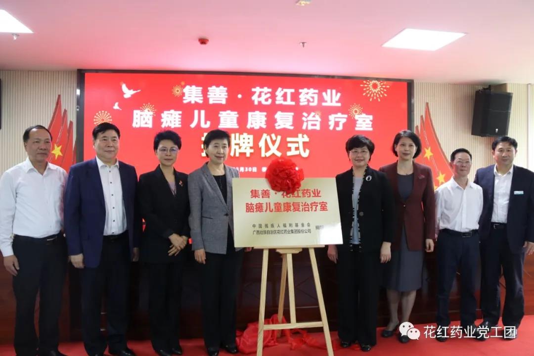3月30日,“集善·花红药业脑瘫儿童康复治疗室”揭牌仪式在柳州市康复医院隆重举行。“集善·花红药业脑瘫儿童康复治疗室”项目由花红药业联合中国残疾人福利基金会,捐赠120万元在6个城市建立“集善·花红药业脑瘫儿童康复治疗室”,免费用于脑瘫儿童康复训练。
