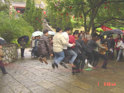 此次联谊活动主要有两大部分,首先是集体联欢,如开展成语接龙、众人齐心跳、击鼓传球、集体板鞋、袋鼠接力跳等趣味游戏竞赛。节目虽少却精粹,尽情展示了花红人蓬勃向上的精神风貌。随后,大家尽情地游览3月龙潭公园美丽的风光,尽享烧烤的乐趣和美味。