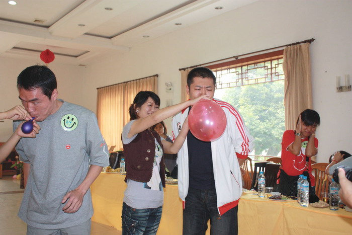 9点30分,40位青年男女相聚在幽静的临江山庄里,个个脸上洋溢着喜悦的笑容,为寻找友情兴奋,更为收获爱情激动。在主持人的倡导下,一个个才貌双全的小伙子们开始了5分钟的个人介绍及才艺表演。既有高亢演唱“死了都要爱”的帅小伙子,也有身怀绝技的武小生;女生们也都一一亮出了自己独特的一面,热歌劲舞、激昂诗歌、幽默笑话……本次联谊活动游戏内容丰富多彩,有“两人吹气球”、“英雄救美”、“踩气球”、“寻找心目中的TA”等,每个游戏都需要男女双方的默契配合。“两人吹气球”需要女生手托气球给男生吹,别看简单,可是难倒了很多人。而小苏和一男生表现默契,遥遥领先于他人,也因此成为了本次活动的速配之星。将本次活动推向高潮的是活动尾声的兔子舞,大家一起在轻快的旋律中感受本次活动带给我们的欢乐。在活动休息期间,红娘陆书记和月老韩书记不辞辛苦地奔波和撮合,一幅幅树下寻佳人的画面不断出现。