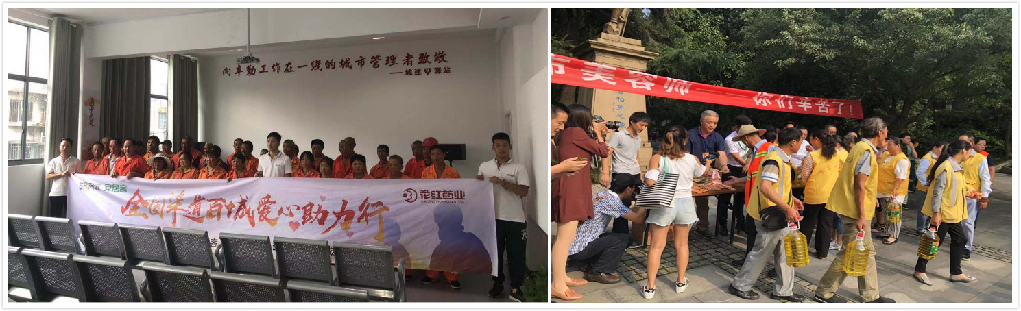 联合城市环卫部门,为环卫工作人员送来消肿止痛酊、食用油、大米等关爱礼品,为他们对城市绿化建设的付出表示感激和支持,环卫部工作人员也对我们的爱心善举表示感谢、支持和欢迎。